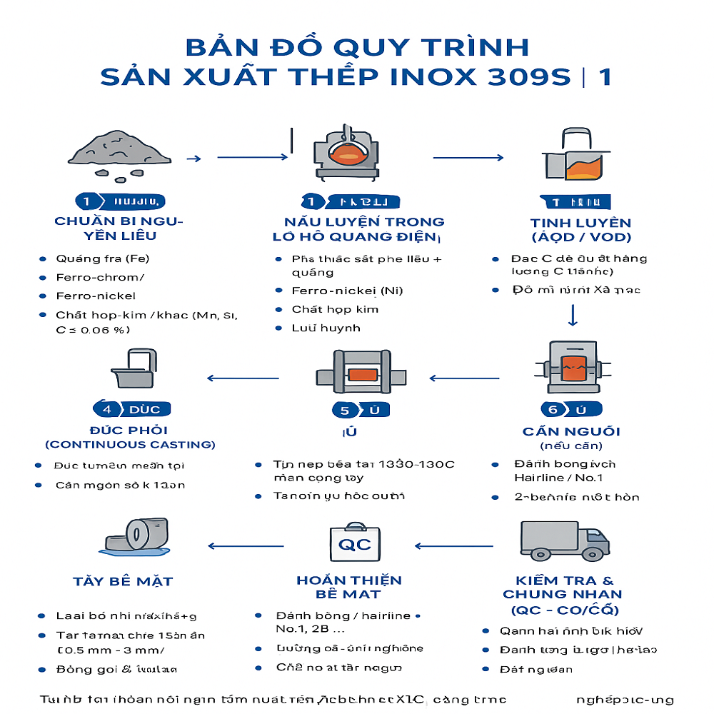 Các phương pháp này đảm bảo rằng thép không gỉ 309 hoạt động tối ưu trong nhiều ứng dụng chịu nhiệt độ cao và chống ăn mòn.